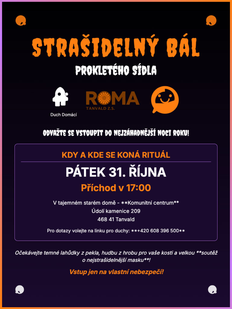 31. října 2024 od 17:00 / Halloween v Komunitním centru Roma Tanvald